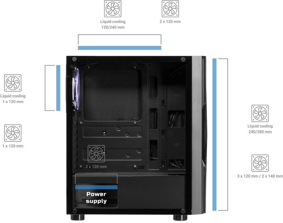 2E Gaming ARDOR is a hypnotic combination of ARGB lighting and geometry of a tinted transparent panel that mesmerizes and attracts one`s attention like a magic crystal from the virtual gaming world.