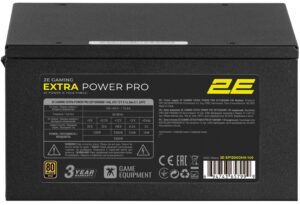 2E GAMING Solid Power power supplies with semi-modular cable connection for productive computer systems. Modern circuitry based on DC-DC converters and a powerful +12B output line, efficiency >85%, 80 Plus Bronze certificate, a reliable component base and the use of overheating-resistant Taiwanese capacitors guarantee stable power supply to PC components and energy savings during operation.