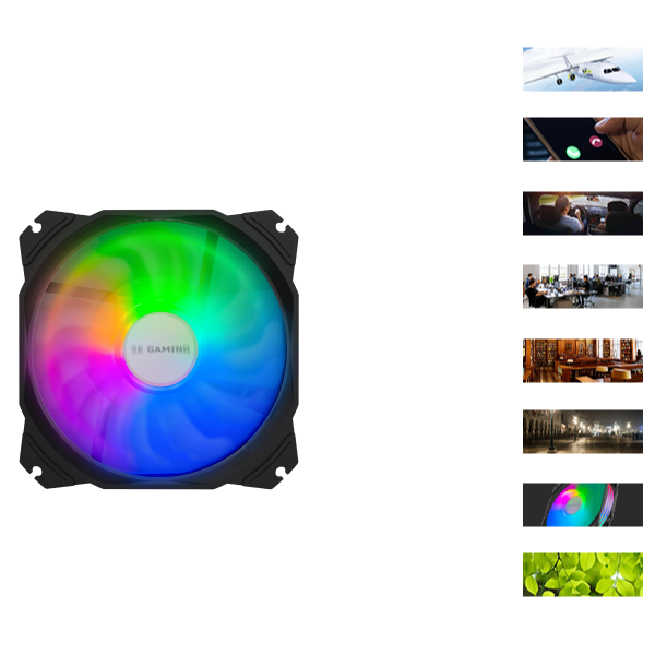 Классический 120мм вентилятор Molex 4PIN +2510-3PIN с черными лопастями и RGB-подсветкой. С четырех сторон размещены антивибрационные накладки. Современный EVA материал накладок не деформируется при нагревании, гасит вибрацию, эластичный и достаточно износостойкий при нагрузках. Вентилятор на гидравлическом подшипнике, работает тихо при максимальной частоте оборотов 1300+/-10% об/мин.